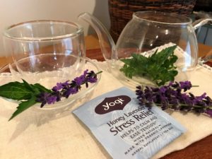本日のお客様には、ヨギティーの、<ストレスリリーフ・ハニーラベンダー>に、生のタイムとラベンダー、ミントをプラスしました。ほんのりと優しい甘さと香りでありながら、のどはスッキリと、美味しく癒してくれます。