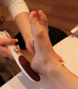 かかとのガサゴソを、ツルツル丸く、柔らかく、保湿効果の高いアロマ・ブレンドオイルで、しっとり仕上げます。